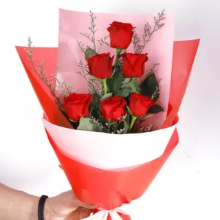 Select options This product has multiple variants. The options may be chosen on the product page6 roses bouquet in red & white wrapping