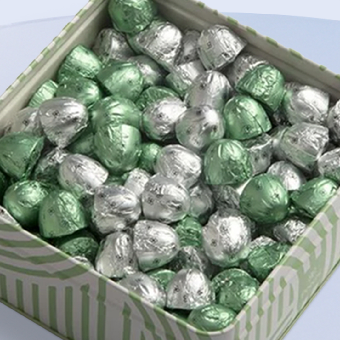 An irresistible Patchi chocolate tin featuring a rich assortment of milk and dark chocolate pieces filled with smooth, nutty gianduja cream. Elegantly wrapped in silver and green foil, this 500g tin is a perfect choice for gifting, sharing, or savoring pure chocolate indulgence.